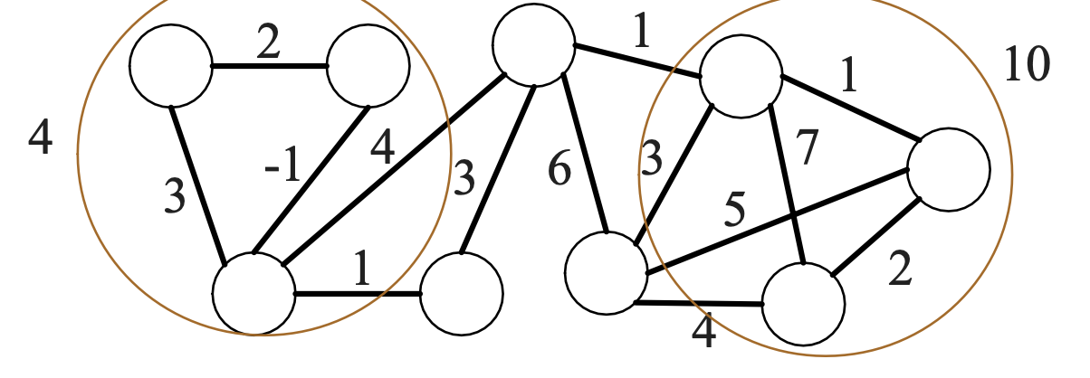 * Suppose there is some negative cut, i.e., $$S \subseteq N$$ such that $$\sum\_{i \in S} \sum\_{j \in N \setminus S} w(i, j) < 0$$.